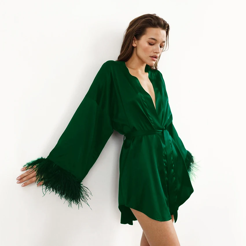Elegant Satin Feather Trim Robe