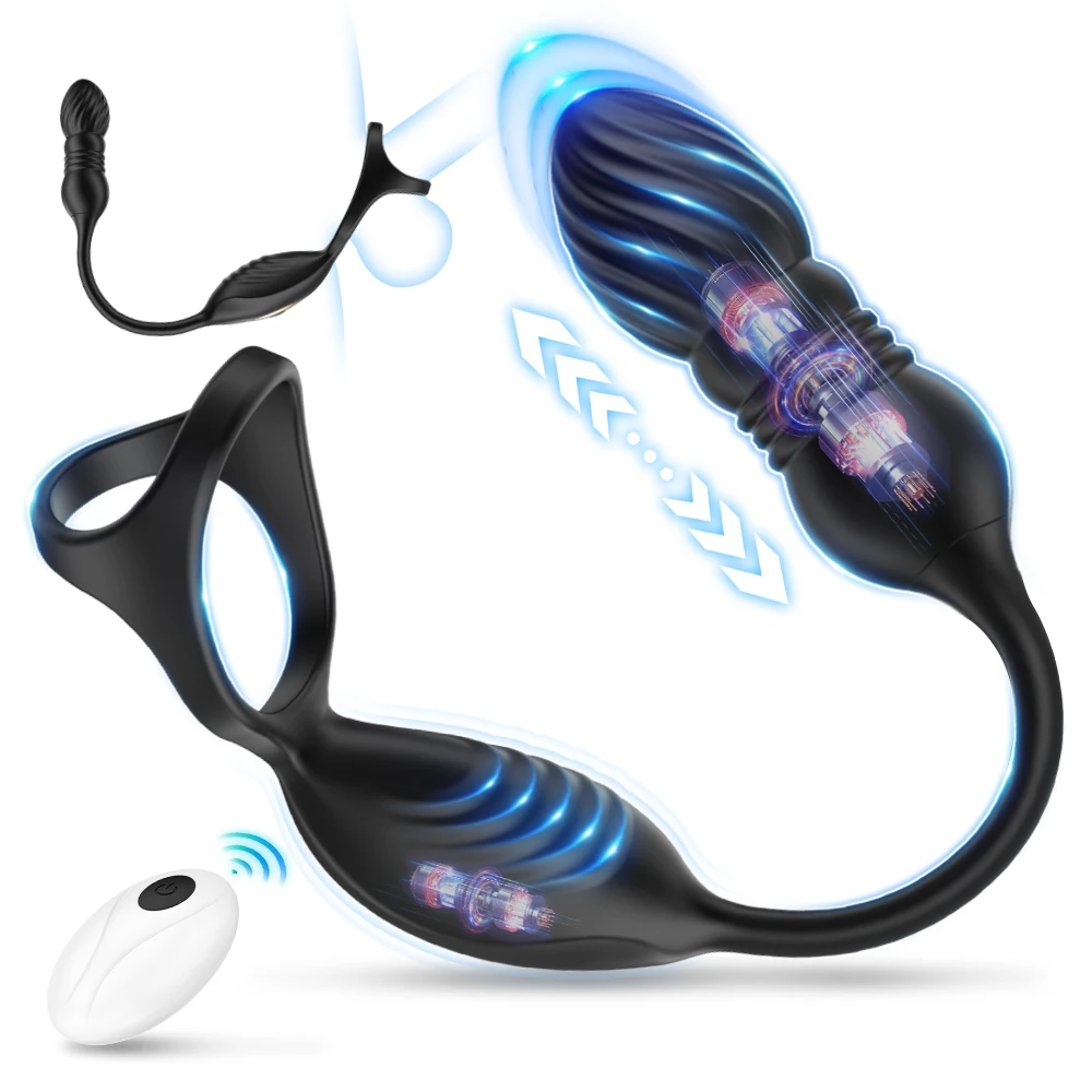 Thrusting Anal Vibrator Prostate Massager Counting Times Cock Ring Sex Toys Male Vibrators for Men Delay Ejaculation Penisrings